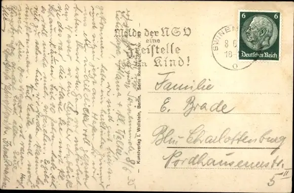 Zustand, siehe Scan, gelaufen, 1935 - ca 14 cm X 9 cm