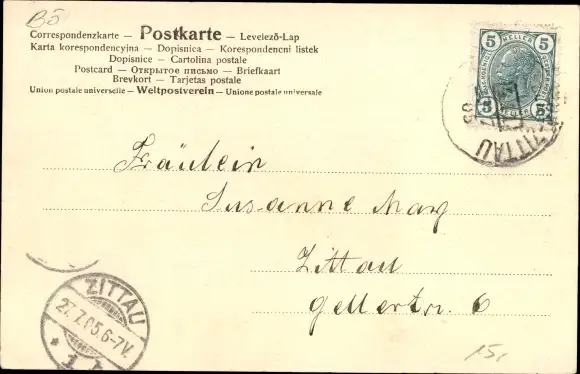 Zustand, siehe Scan, gelaufen, 1905 - ca 14 cm X 9 cm