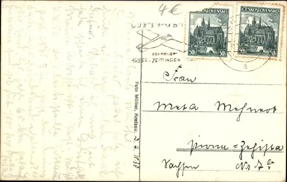 Zustand, siehe Scan, gelaufen, 1938 - ca 14 cm X 9 cm