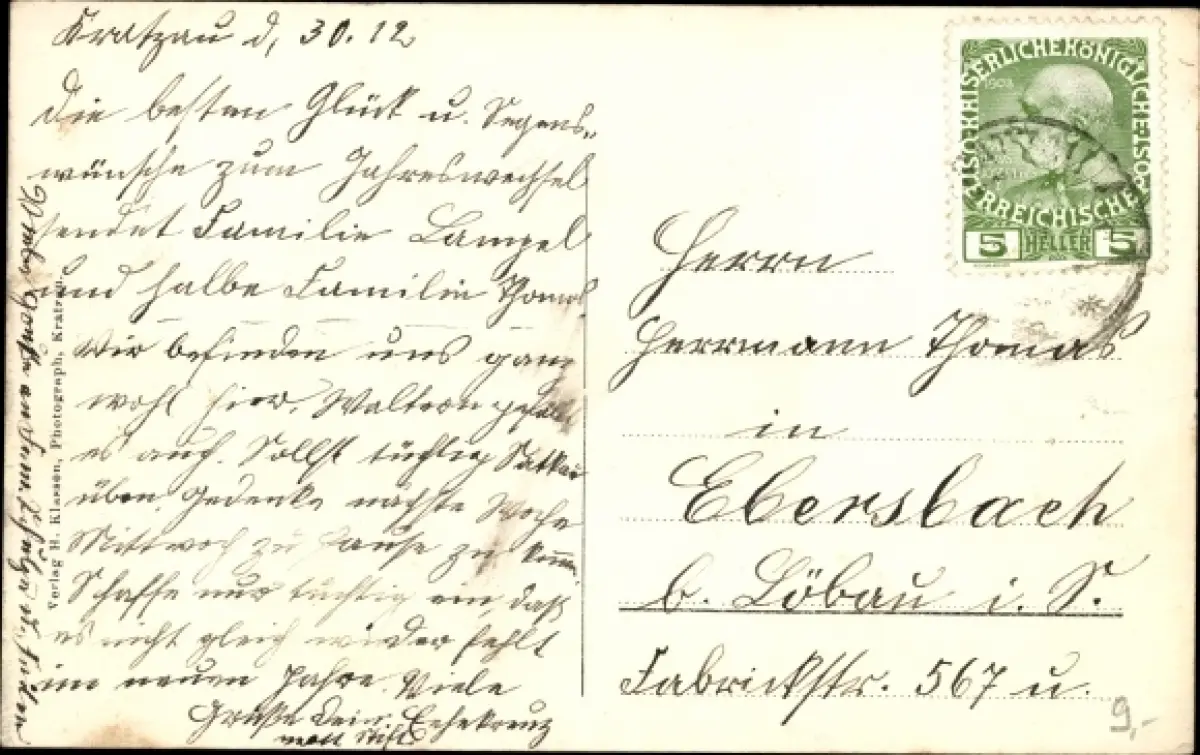 Zustand, siehe Scan, gelaufen, 1912 - ca 14 cm X 9 cm