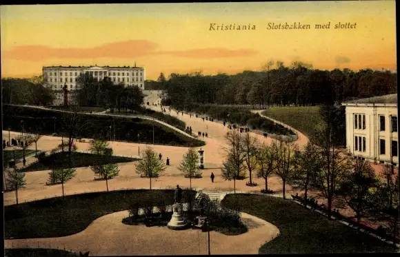 Ak Christiania Oslo Norwegen, Slotsbakken med slottet