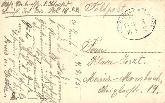 Zustand, siehe Scan, gelaufen, 1915 - ca 14 cm X 9 cm