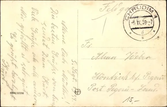 Zustand, siehe Scan, gelaufen, 1939 - ca 14 cm X 9 cm