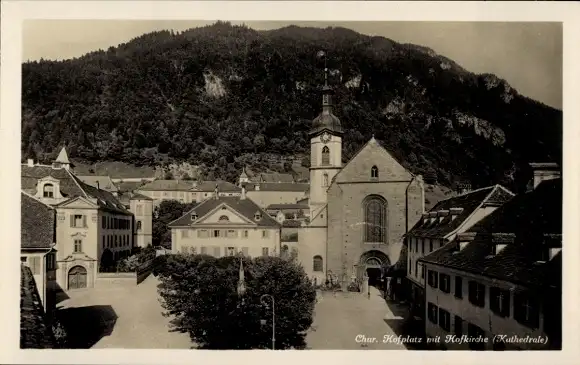 Ak Chur Kanton Graubünden, Hofplatz mit Hofkirche (Kathedrale)