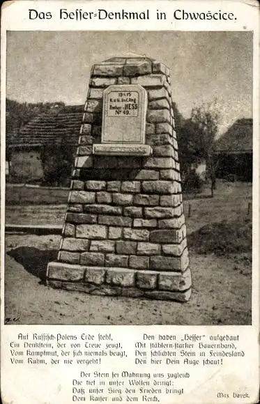 Ak Chwaścice Polen, Hesser-Denkmal, Gedicht