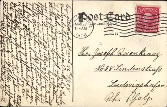 Zustand, siehe Scan, gelaufen, 1908 - ca 9 cm X 14 cm