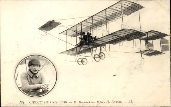 Ak Circuit de l'Est 1910, Martinet sur Biplan Farman