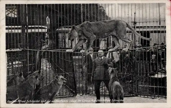 Ak Circus Kapitän Alfred Schneider, Löwen, Dompteur