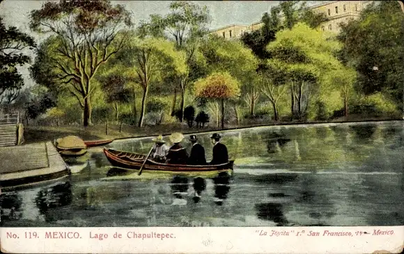 Ak Ciudad de Mexico Mexico City Mexiko Stadt, Chapultepec, Ruderpartie auf dem See