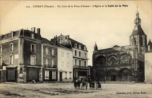 Ak Civray Vienne, Ecke Place d'Armes, Kirche, Café de la Paix