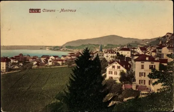 Ak Clarens Montreux Kt. Waadt, Totalansicht der Stadt, Pension St. James