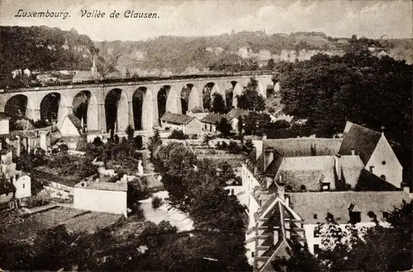 Ak Clausen Luxemburg, Teilansicht mit Viadukt