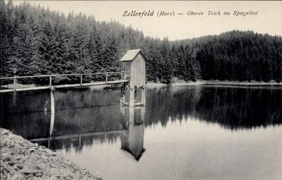 Ak Clausthal Zellerfeld im Oberharz, Oberer Teich im Spiegeltal