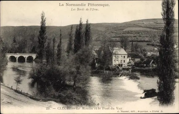 Ak Clécy Calvados, Le Moulin, Pont du Vay