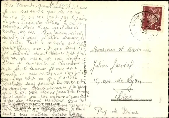 Ak Clermont Ferrand Puy de Dôme, vue generale prise des quatre routes
