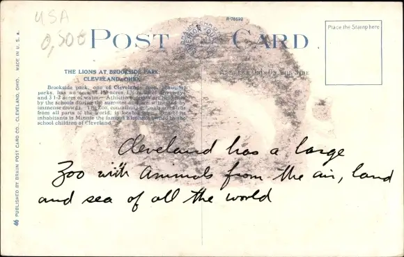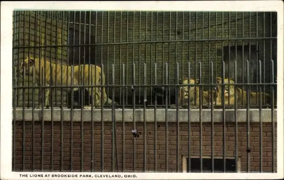 Ak Cleveland Ohio USA, The Lions at Brookside Park, Löwen