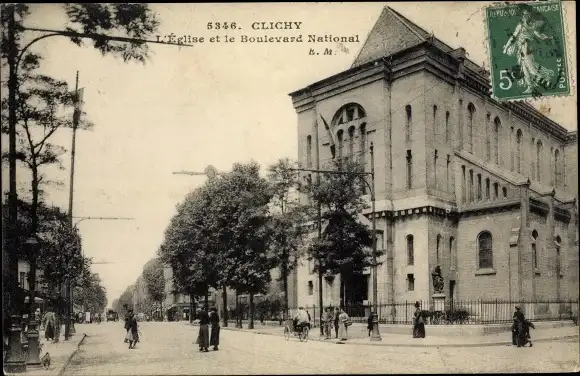 Ak Clichy Hauts de Seine, L'Eglise et le Boulevard National