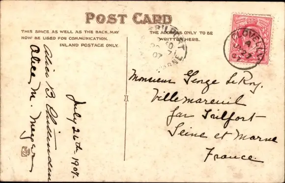 Zustand, siehe Scan, gelaufen, 1907 - ca 9 cm X 14 cm