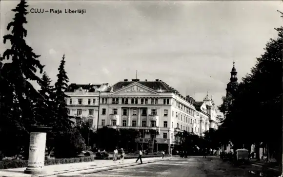 Ak Cluj Rumänien, Piata Libertatii, Blick in eine Straße, Litfaßsäule