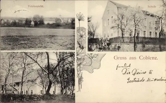 Ak Coblenz Göda in der Oberlausitz, Totale, Schule