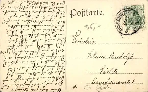 Zustand, siehe Scan, gelaufen, 1908 - ca 14 cm X 9 cm