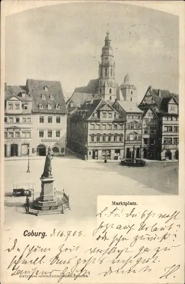 Ak Coburg in Oberfranken, Marktplatz, Denkmal
