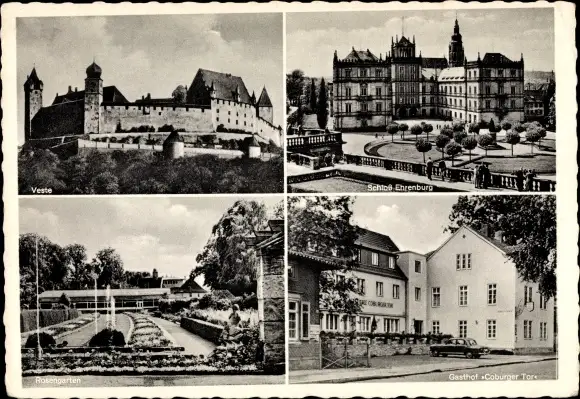 Ak Coburg in Oberfranken, Veste Coburg, Schloss Ehrenburg, Gasthof Coburger Tor, Rosengarten