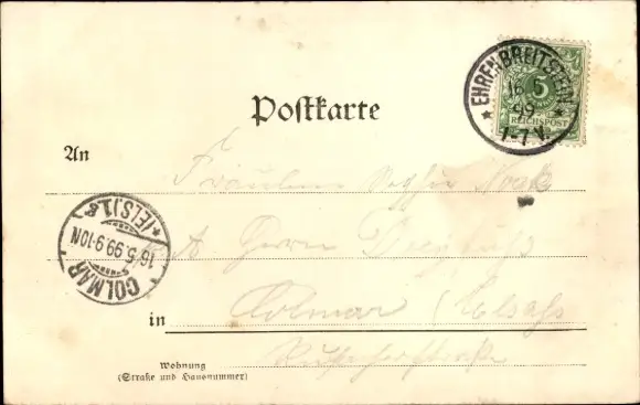 Zustand, siehe Scan, gelaufen, 1899 - ca 14 cm X 9 cm