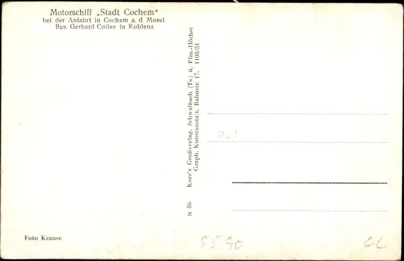 Ak Cochem an der Mosel, Motorschiff Stadt Cochem