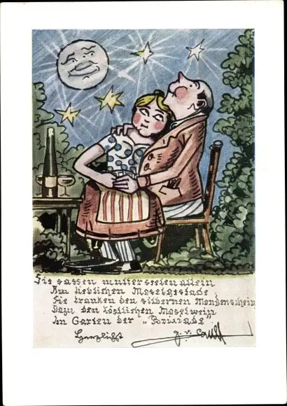 Ak Cochem an der Mosel, Sie sassen mutterseelenallein, Wein, Mondschein, Liebespaar