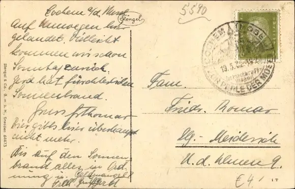 Zustand, siehe Scan, gelaufen, 1932- Stengel 64473 - ca 14 cm X 9 cm