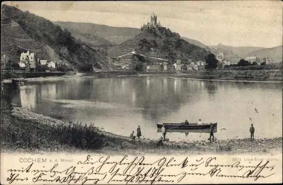 Ak Cochem an der Mosel, Uferpartie, Boot