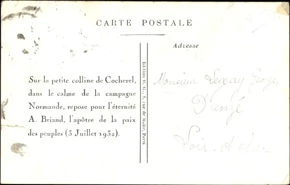 Ak Cocherel Eure, Le Tombeau, Aristide Briand
