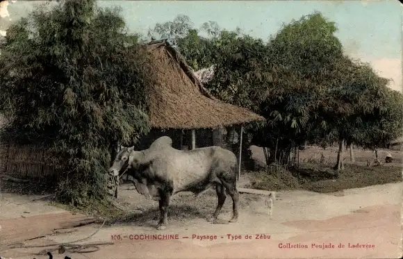Ak Cochinchina Vietnam, Landschaft, Zebu-Typ