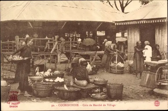 Ak Cochinchine Vietnam, Coin de Marche de Village
