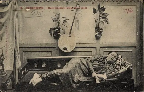 Ak Cochinchine Vietnam, Demi-mondaine annamite au repos