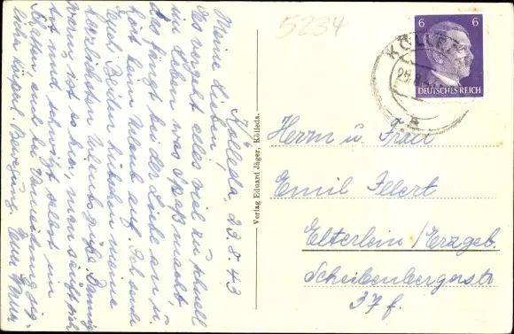 Zustand, siehe Scan, gelaufen, 1943 - ca 14 cm X 9 cm