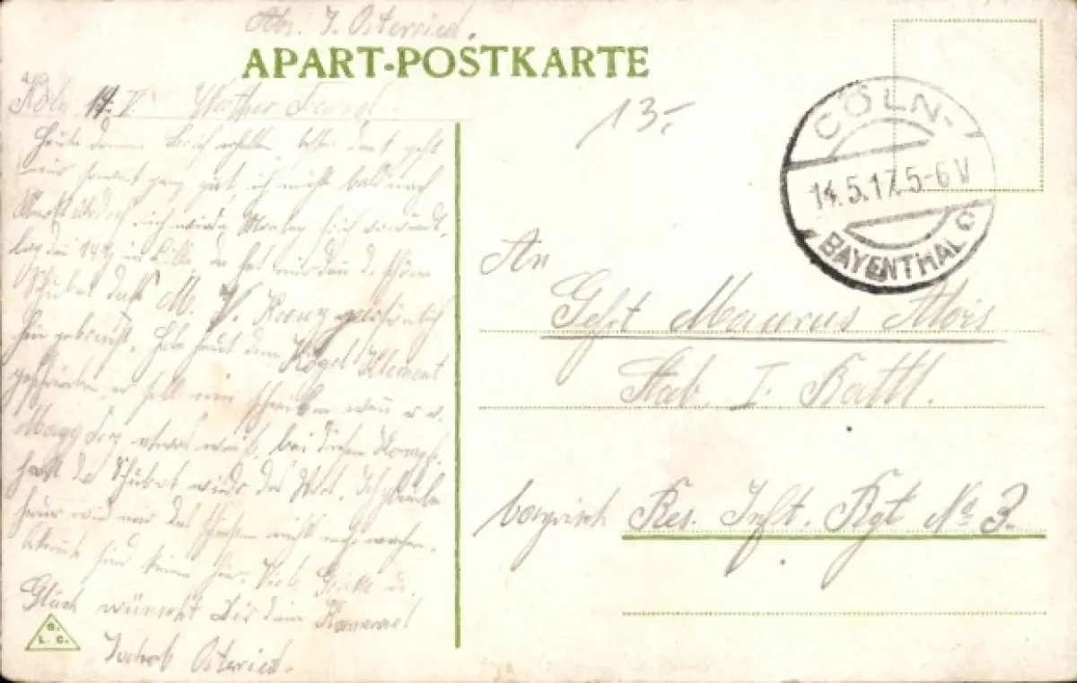 Zustand, siehe Scan, 1917, gelaufen - ca 14 cm X 9 cm