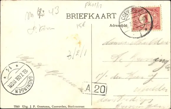 Zustand, siehe Scan, gelaufen, 1909 - ca 14 cm X 9 cm