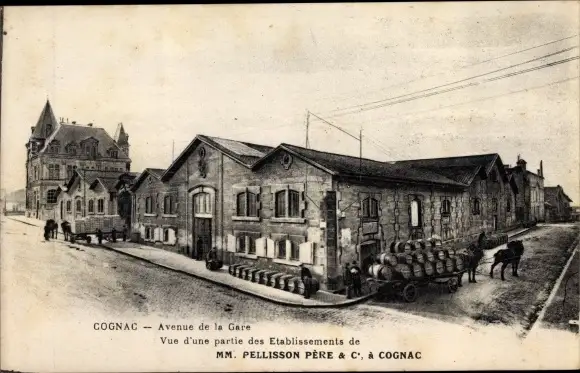 Ak Cognac Charente, Avenue de la Gare, Vue d'une partie des Etablissements MM. Pellisson Pere & Cie.