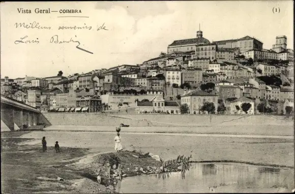 Ak Coimbra Portugal, Gesamtansicht, Strand, Stadt