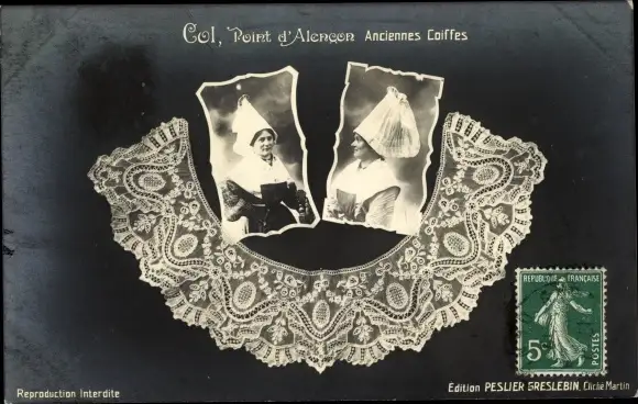 Ak Col, Point d'Alencon, Anciennes Coiffes, Trachten Normandie, Spitze