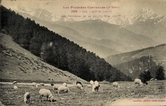 Ak Col d'Aspin Pyrénées Atlantiques, Panorama, Weiden, Pic du Midi