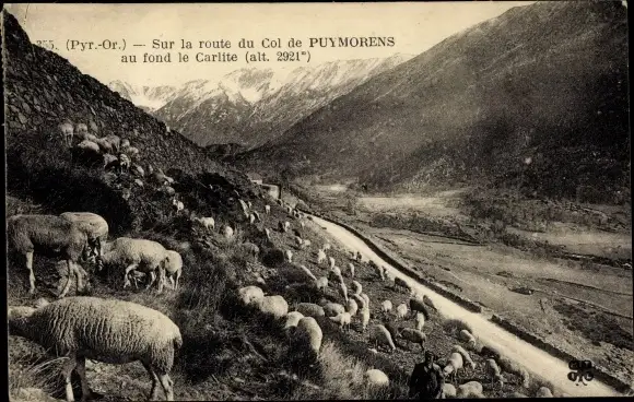Ak Col de Puymorens Pyrénées Orientales, Sur la route, Au fond le Carlitte