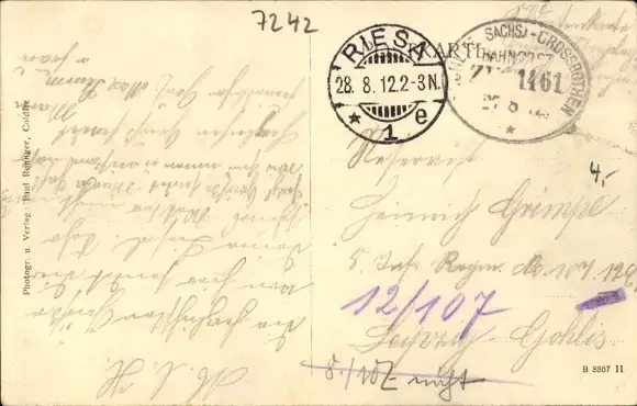 Zustand siehe Scan, gelaufen, 1912 - ca 14 cm X 9 cm