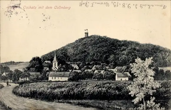 Ak Collm Wermsdorf bei Oschatz, Ortsansicht mit Blick auf den Collmberg