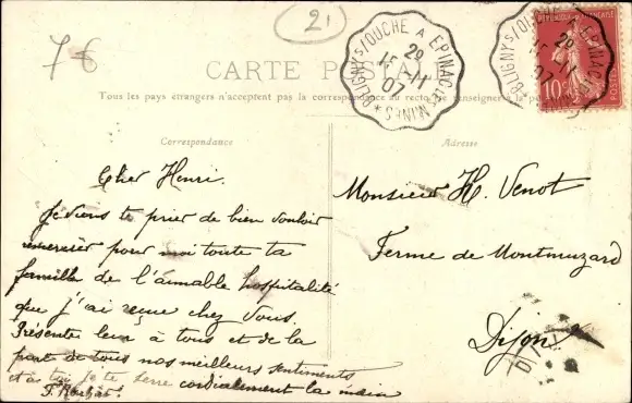 Zustand, siehe Scan, gelaufen, 1907 - ca 14 cm X 9 cm