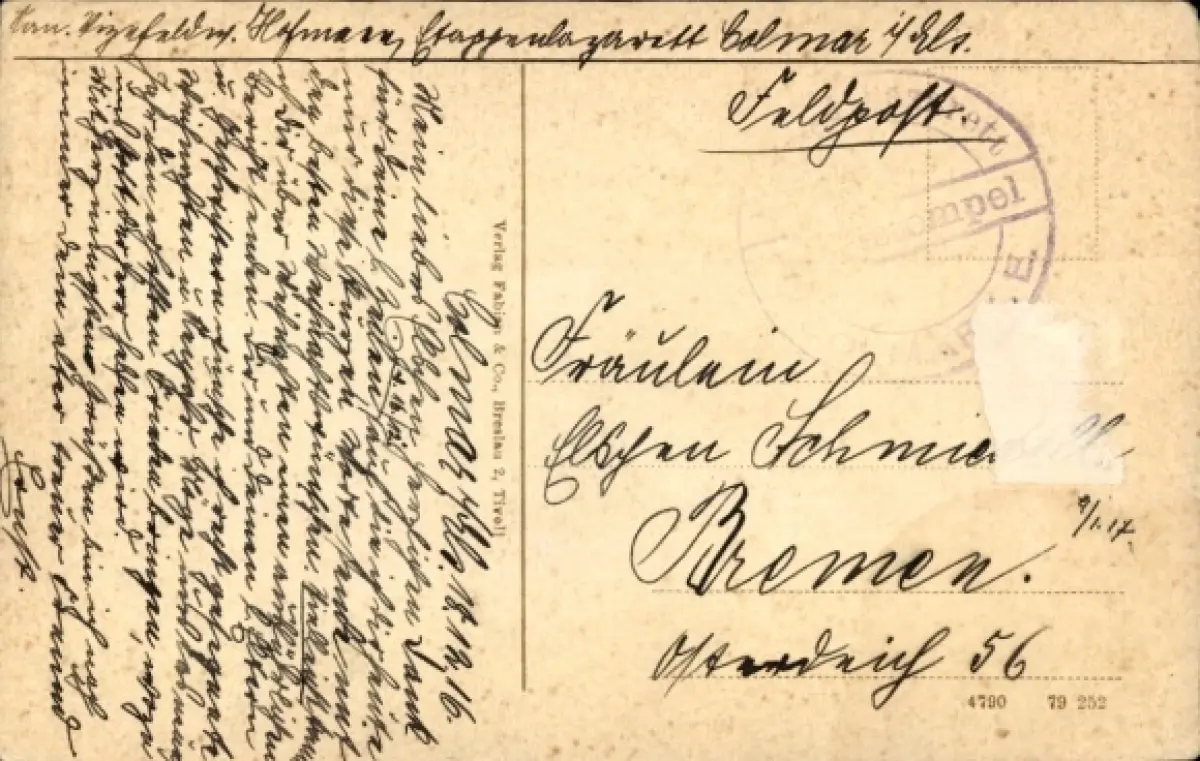 Zustand siehe Scan, gelaufen, 1916 - ca 9 cm X 14 cm