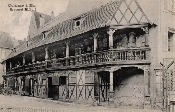 Ak Colmar Kolmar Elsass Haut Rhin, Partie an der Brauerei Kolly