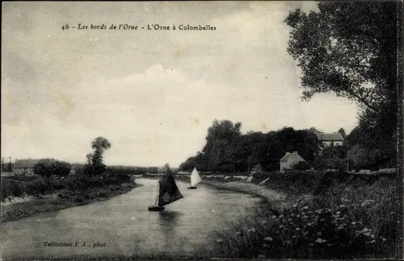 Ak Colombelles Calvados, Les bords de l'Orne, Segelboote